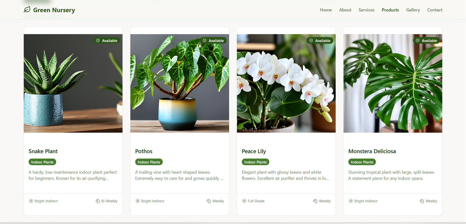This website is designed for modern nurseries and plant businesses to showcase plants, gardening products, and services in a fresh and natural way.